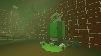 Controls: standard W,A,S,D, E to interact with objects, Left mouse button to drag objects.